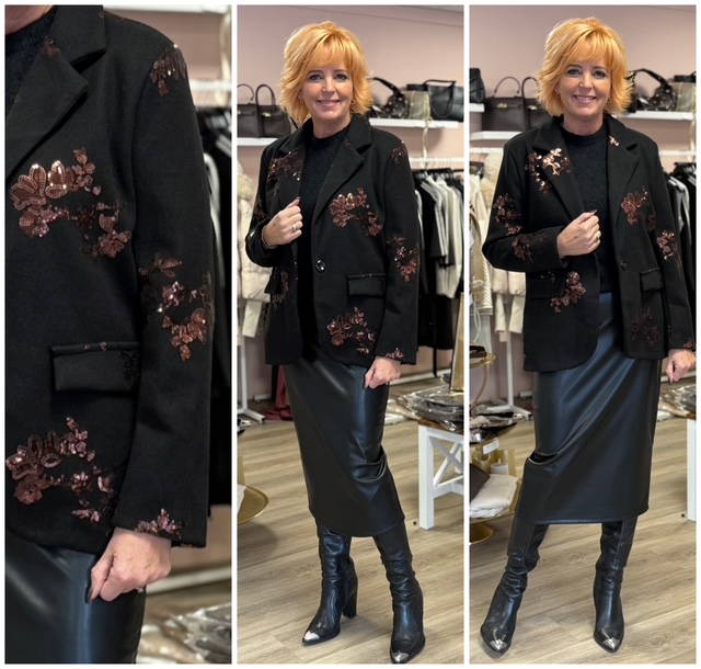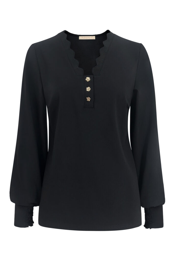 Trui Suus met turtle neck en bloem Triple Nine Zwart