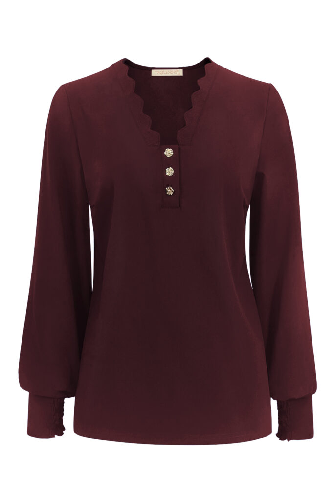 Trui Suus met turtle neck en bloem Triple Nine Bordeaux