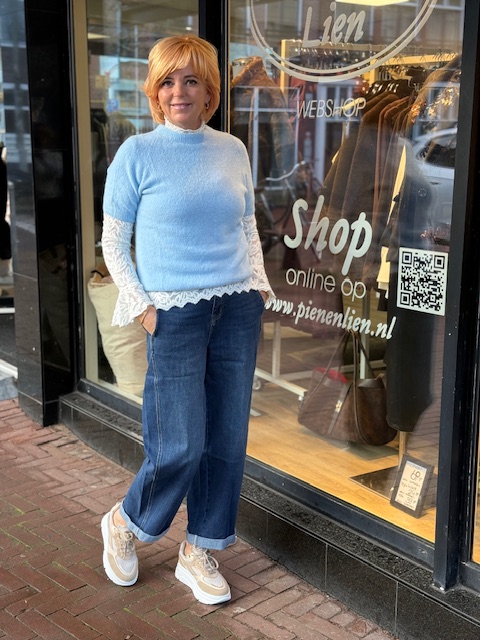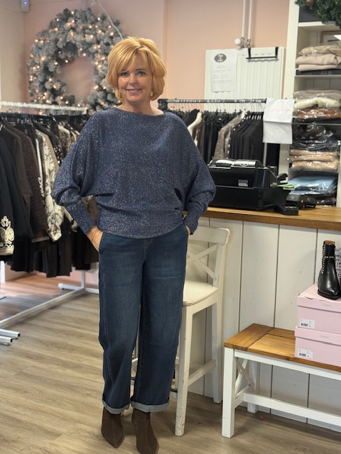 Vleermuis trui Peacock Triple Nine Lurex Blauw