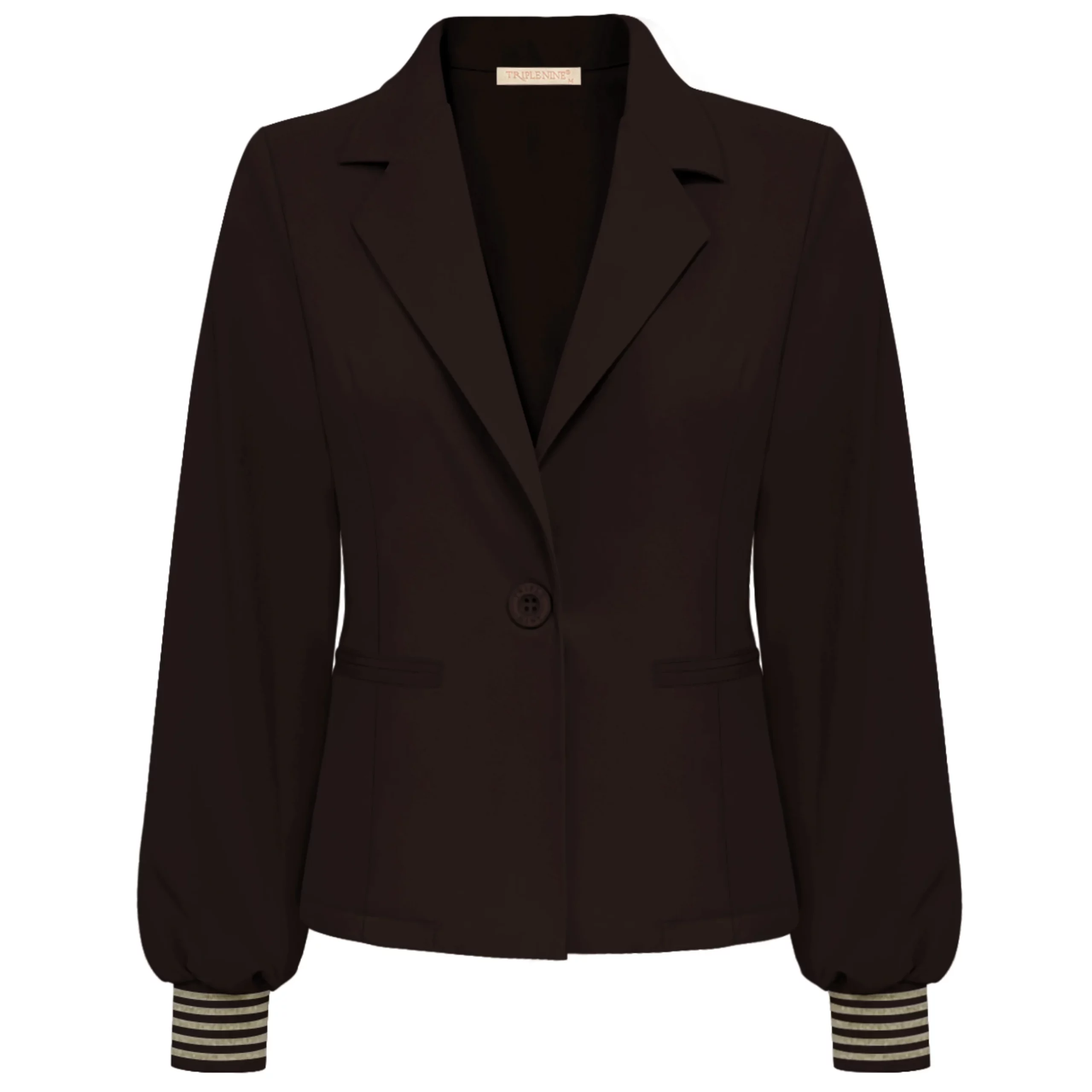 Mooie kort getailleerde blazer in travelstof met licht poffende mouwen met een elastische manchet met