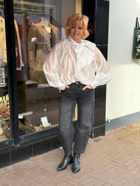 Leuke blouse in kort model in dun luchtig stof met een pof mouwtjes