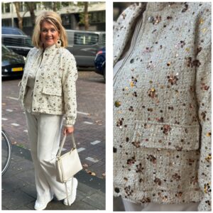 Stijlvol licht oversized bomberjacket met pailletten in het bruin
