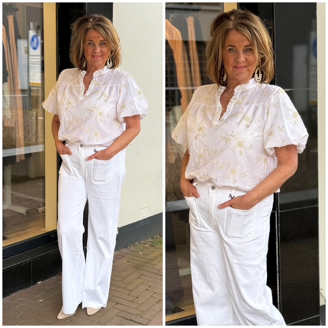 Broek in 100% linnen in een wide leg model met elastiek in de taille.