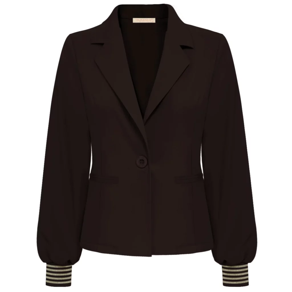 Mooi kort hemdje in dun strecht licht goud stretch breisel met gescubte randjes.