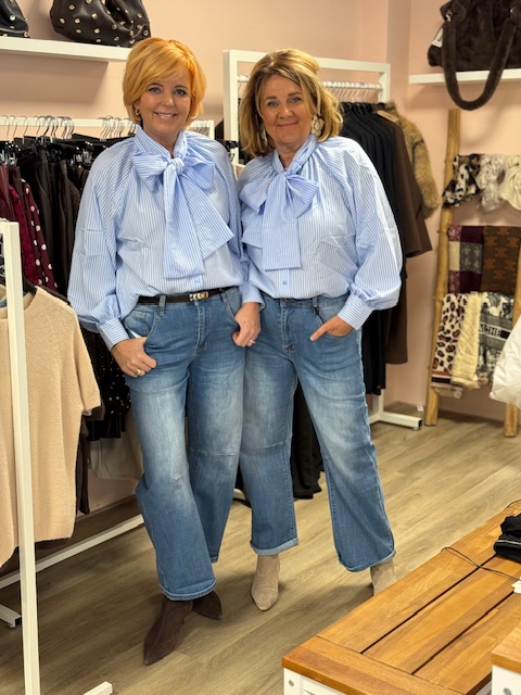 Deze wijde taps toelopende rond gesneden pijp is absoluut ‘on trend’.