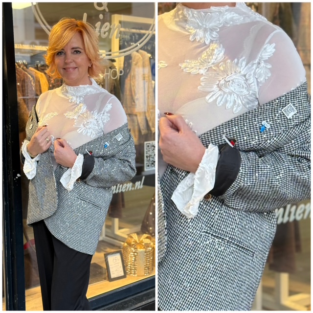 Ons model draagt hier de maat L en