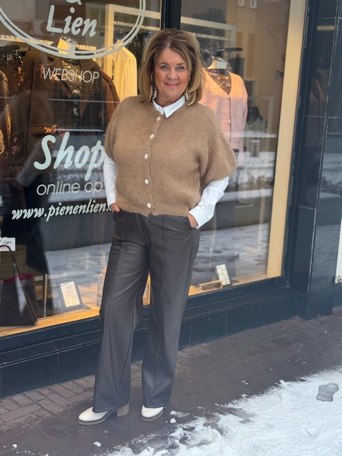 Prachtig ruimvallend vestje in Mohair met een mooi kort mouwtje om er een leuk blousje onder te kunnen dragen.